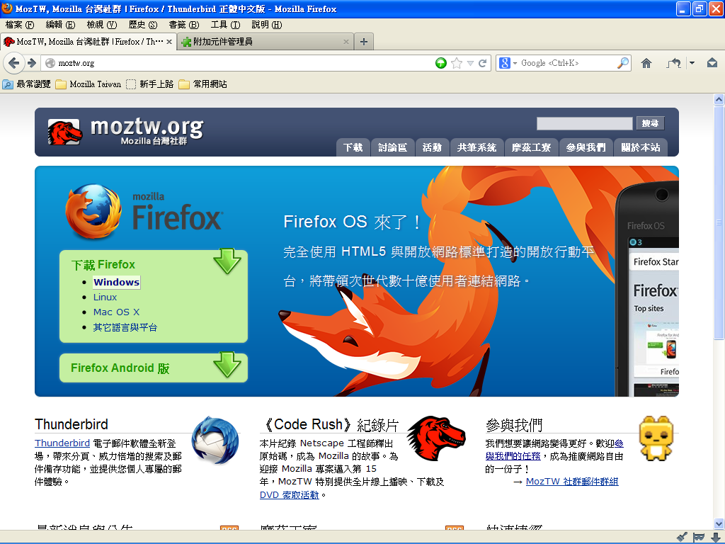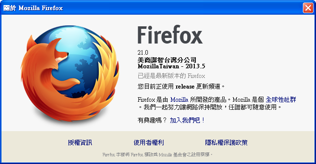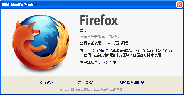 本版本已終止開發,下載最新版 Firefox 請至 Firefox 正體中文版 頁面
